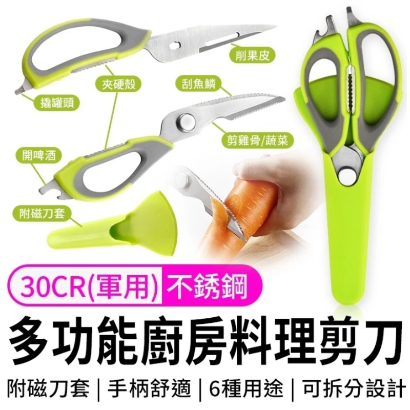 廚房剪刀 食物剪刀 食物剪 料理剪刀 剪刀 雞骨剪 多功能剪刀 烤肉剪 不鏽鋼 一把搞定!強力兩斷!一剪即斷!不囉嗦!食用前必備工具! 一把在手,萬物皆可剪!刮魚鱗、削果皮、剪切硬骨、夾核桃 開罐頭等等,只要一支剪刀就可以有多種用途,一剪多用! 拆裝多功能使用,清洗更方便衛生不藏垢!專業工藝,提高剪 刀硬度!磁性剪刀座,方便收納拿取~可拆裝設計,多用途使用 八種功能可剪、切、削、刮、開、夾、挖、吸,可以剪雞骨、魚鰓 螃蟹、切蔬菜水果、肉類、削皮、刮魚鱗、開瓶罐、貝殼、夾堅果 是廚房好幫手,附安全剪套,背面設計磁貼,可吸掛冰箱、微波爐 露營、釣魚、野餐好幫手,可反覆清洗 一沖即淨 規格:全長23cm 剪片材料厚度3mm (上述尺寸為人工測量+_5%誤差為正常範圍) 材質:高級不鏽鋼 配件:保護套 圖片影片僅供參考,出貨以實品為準
